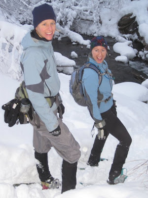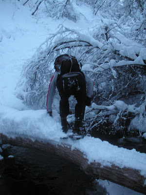 As soon as we turned off, we got to cross a little stream. While Brian was packing down the snow on the log for us…