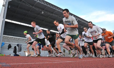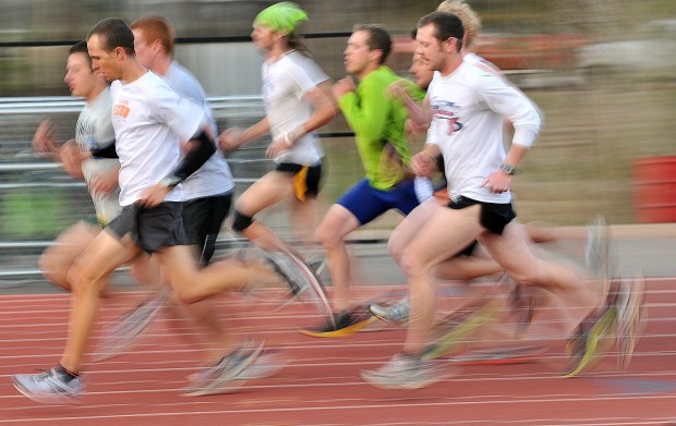Karl and I play tag team a lot. Every day. I am going to tell you about our Tuesdays since I borrowed some cool pictures of Karl on the track from our local newspaper.