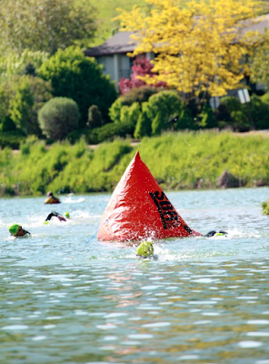 I knew that if I wanted to win this thing, I needed to push the swim a little harder than usual. There were some great bikers and fast runners in the field and my best chance to win was to lead from start to finish. That was my goal. I felt good on the swim and found myself pretty much alone after the turn-around buoy. I was hoping this meant that I passed a few guys rather than that everybody was way ahead of me.