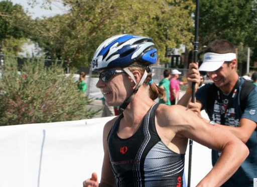 Finally T2 came into sight and a nice volunteer grabbed my bike, but not before I ripped the Garmin off and stuffed it into my chest pocket: