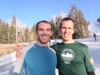 Remember the Kahtoola Agassiz Uphill Race? Last year Karl won himself an awesome pair of Microspikes! Ever since then he had been excited for this year’s uphill extravaganza. And so had I! Flagstaff puts on some great local races and you definitely don’t wanna miss out on this one. Except that Karl did almost miss out in the end because I was late coming home from my one-woman triathlon. But, in the end, we made it to the start with a few minutes to spare.