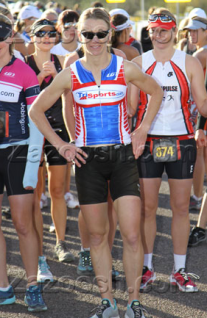 Any guesses on who the real runner is in this picture? Jason mentioned that his girlfriend, Mo, was competing in her first multi-sport race, so I was determined to find her and chat with at least one person before the start. All I knew was that she is a runner, so once I spotted a really skinny, really fast looking girl in short shorts and a sports bra – bingo! She was super nice and, of course, took off like a rocket!