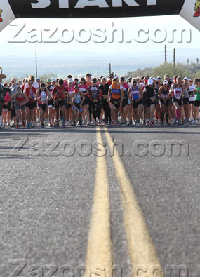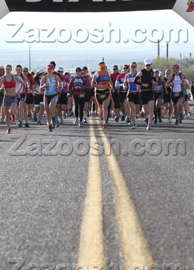 Don’t let these pictures fool you: We did start out on the road (uphill) but it only lasted for a few minutes. Then we were off on the trails weaving our way around Giant Saguaros. I knew everyone would start out (too) fast and I focused on running my own comfortably hard pace. No need to blow up on the first run but I also did not want to get stuck behind too many people on the single-track.