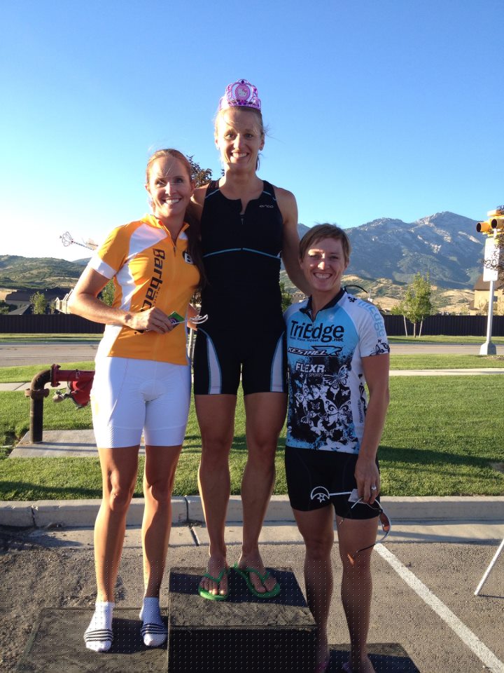 I was stoked to see my fellow triathlon friends, Jeanette and Amber, take 2nd and 3rd. I love racing with friends! Eventually we rode/flew back down to the start where we had a little party with all the other ladies. And, yes, they did make me wear a crown and I didn’t even mind… Then I rode back home. Almost. It got too dark and so I decided to hang out at Carlee’s house until Karl would come and get me. Thank you, friends and husband, for taking such good care of me!