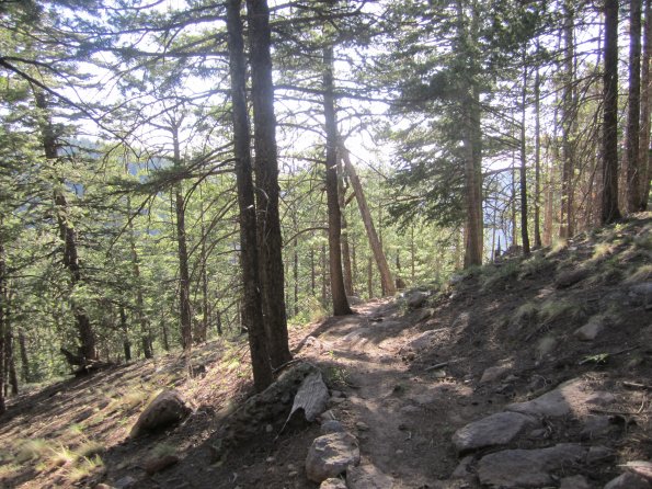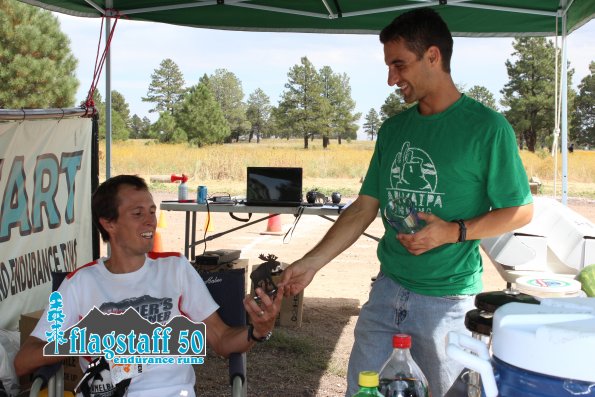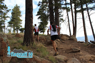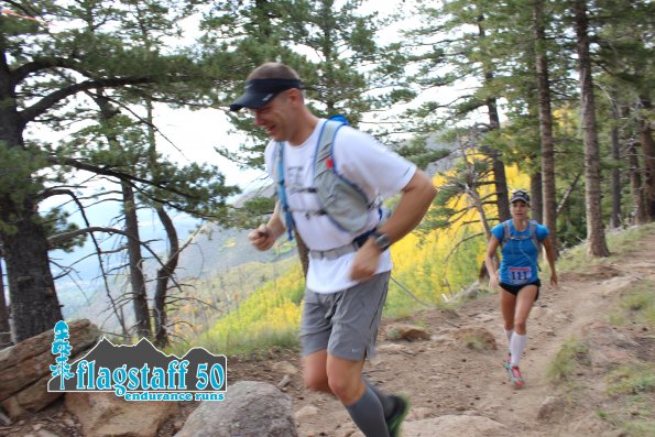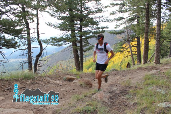 We started at Buffalo Park with a nice little group of about 30 runners. We headed straight through the park and onto the Forest Service trails, where we would be for the next few hours. A guy in a neon jersey and a shirtless guy took off up ahead at a faster pace than I wanted to try to go, so I stayed with a couple other runners a little ways back. After a half hour of going up Lower and Upper Oldham, Caleb Schiff and I ended up running together, and we ended up sticking together for about the first 10 miles of the race.