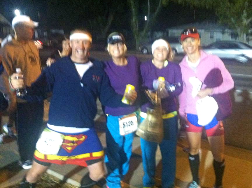 The simplicity of running makes me very happy! My friends tried to talk me into all sorts of crazy outfits but I refused. I wanted to feel comfortable and just wear my favorite shorts and shirt. Why make things complicated? I have to admit that I loved Coachie’s outfit but I prefer to be a little more… boring. I like boring. I did wear some fun (disposable) arm warmers but because it was such a nice and rather warm morning, I got rid of them before they made it into any pictures. Bummer!