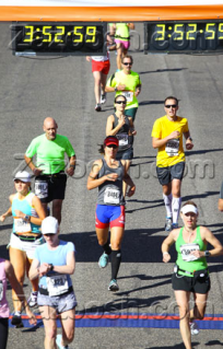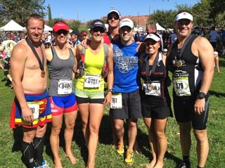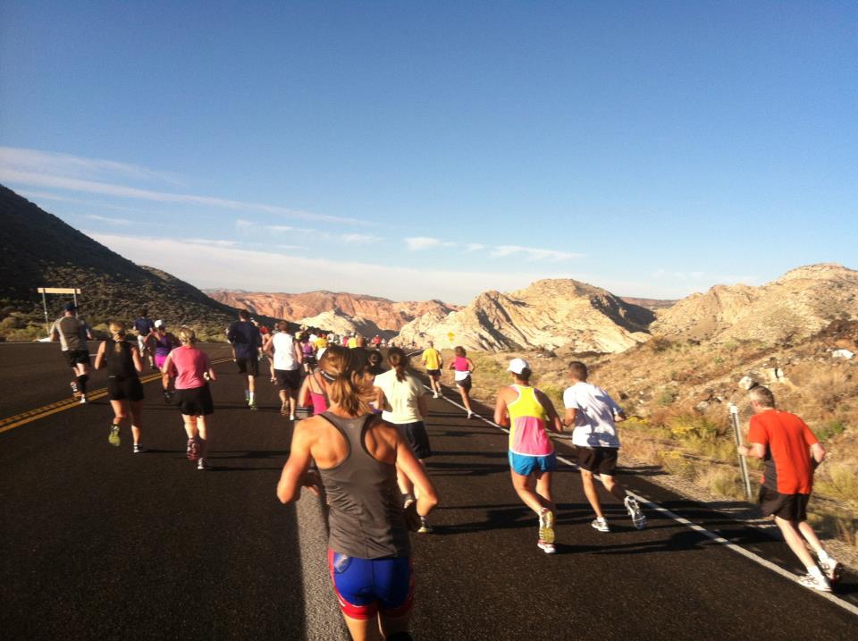 Like I’ve mentioned before: This was my first marathon! I ran one as part of the Challenge Roth back in 2007 but that doesn’t really count… This was the real deal and I was super excited to be toeing the line with Colleen, Jess, Coachie, and tons of other crazies! I am not sure why I was so thrilled about the prospect of running 26.2 miles with a gimpy leg and basically no preparation. Granted, I am in decent overall shape but I honestly haven’t run more than 14 miles since that day in 2007. At least not that I can remember… It didn’t help that my season ended after Vegas and I kinda quit running after that. I still got in trouble for the few miles I jogged at about a 9:00/mi pace but that’s a different story…