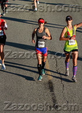 - Colleen. Coachie went off the front, Jess left us eventually, but Colleen and I ran side by side for the first 20 miles. What a treat! This was Colleen’s 10th marathon, so she knew what she was doing. We started out nice and slow and she kept reeling us in when we wanted to gallop off. You see that awesome little pack she is wearing? It nicely held everything she and I needed. Thank you for carrying my salt pills and letting me sip your water! Love that girl!