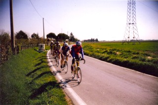 Time to hop on the bikes with my TRT Remchingen teammates! Italian roads back then were small and crappy. (At least compared to our small and perfect German roads.) We had a lot of flats! But I wasn’t about to complain. First, I learned how to fix flat tires. Second, it gave me a minute to catch my breath and get ready for the next round of ‘hang-on-to-the-wheel-in-front-of-you-or-get-lost-in-the-Italian-countryside-and-never-find-your-way-back-to-the-hotel’. It was great fun! Unless the weather didn’t cooperate. Which happened a lot. But no one cared. We would ride about 60-90 miles each day and hit one or more serious climbs. The climbing was my favorite part because everyone went at their own pace and we would regroup at the top. On the way back the boys put on the hurt! I remember plenty of times when I was in the back crying into my sunglasses because I didn’t think I could hold on any longer.