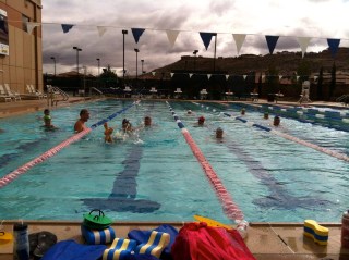 * Some great swimming with plenty of helpful (and fun) drills from Coachie! I do love his drills but I tend to get super cold while not moving much, so I have a love-hate relationship when it comes to drills. My favorite was definitely the one pictured above. Sit on your kick board and skull to the other side. Turns out that if this is how we moved through the water in a triathlon, I might actually make the front pack!