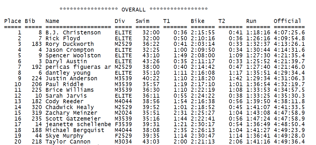 Congrats to everyone who raced and finished! I have been competing with some of these guys for a decade now but it never gets old!