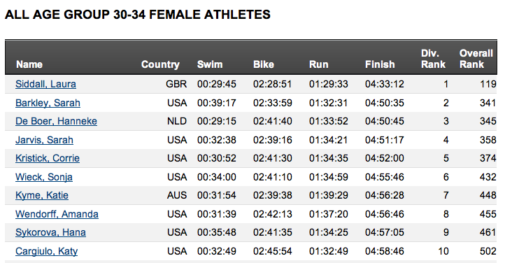 It looks like I had the 19th fastest* swim, the 5th fastest bike, and the 7th fastest run in my age group. Which got me to the finish line in 4th place and as the 6th female amateur! So, on paper that looks like a fantastic result! And it is. I am stoked to have made it on the podium (which is Top 5 here) in this race for the 3rd year in a row. But I am not so pleased about what happened on the last 2 miles of the run…