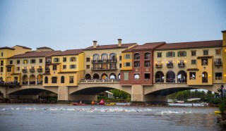 Friday afternoon, just in the nick of time, I bike over to the expo to pick up my race packet. Except that there isn’t any expo. The whole place is deserted. I start to panic and check my watch. 3pm. The expo and packet pick-up aren’t supposed to close for another hour. So I walk up to the big tent when someone barks over a microphone: “Hey! Lady with the red shirt! You need to get out of here now! This place is closed down!” Me: ??? Loud guy: “There is a severe storm warning and nobody is allowed out here.” I look around. Clouds. No thunder or lightening as far as I can tell. Slight breeze. Interesting. He orders me into the cultural center across the plaza and, when I go the opposite direction to fetch my bike first, he gets mad and I worry he is going to confiscate my bike. I realize that IRONMAN just wants to make sure everyone is safe but I think it’s a bit overkill and roll my eyes. Mistake. Now he is lecturing me about ‘attitude‘. Over the microphone. Sweet.