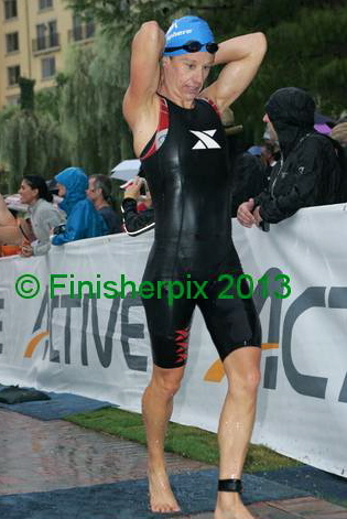I got a ride to the start with my friends, Jen and Wes, from Utah and we arrived only shortly before transition closed. Which was fine for once because I didn’t want to be in the rain longer than I had to and everything was basically set up already. They closed transition at 6:15 and then there is nothing to do but sit in the rain for more than an hour. No place to warm up and not even any access to port-a-potties. This is my least favorite part of big races. I realize that it helps the flow of things but it’s just plain annoying. Especially when you need to go to the bathroom… Good thing I ran into Rebecca Travis who is always a great competitor and fun to talk to! Thanks for the chat!