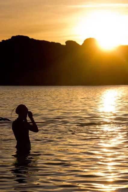 The reason I like to get to T1 early on race morning is so I can chat and hang out with my friends! Except that I didn’t have any friends in our little ‘Pro zone’ and no one was particularly chatty. So I got a bit bored and took off in search of some friendly faces. And I found plenty! On the other side of the fence it was party as usual and I hung out until it was time to pop into my new Zoot Prophet and head down to the water!