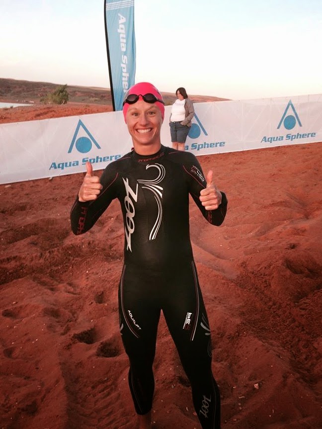 No waiting around. No lining up behind the sign with your age group. No urgent need to pee in my wetsuit on dry land. Just a little pep talk from Coachie and plenty of time for a little warm up swim. There was definitely a lot of media and it was fun to see some of the more famous Pros vying for their attention. I guess in all of my years of racing I had never really wondered how it all goes down for the Pros. Nor had I ever wished or thought I would be one of them. I was just super happy to be racing as an Amateur. But now that I was in the midst of it, I was excited to take it all in and loved every minute of it!