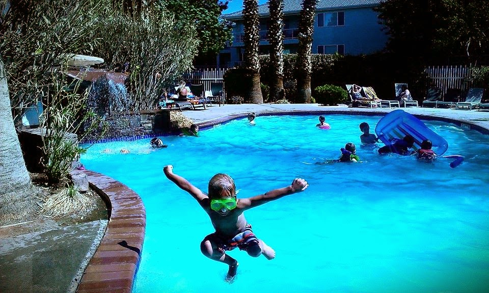 Kids will be kids. We got into town late Wednesday night and Max was ready to hit the pool on Thursday morning at 8am. While Karl was out for a trail run. So off we went to the pool. Bright and early and, fortunately, plenty warm! Needless to say we had the whole pool to ourselves. It was delightful. I have to admit that Noah and I just hung out, dipped our toes in the water, and watched Max’s pool shenanigans. But still…