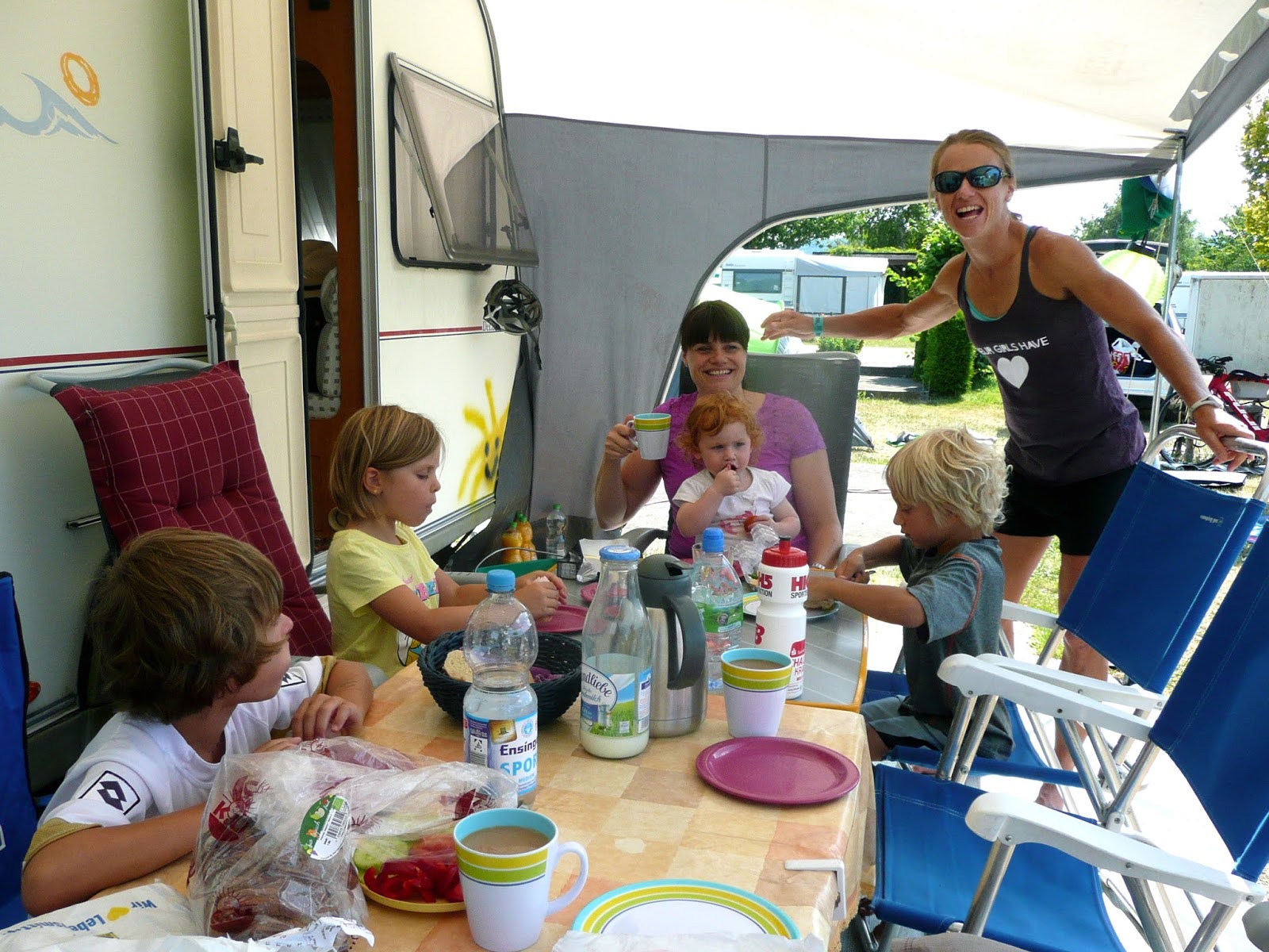 Whereas only my dad and I went to Kraichgau 70.3, this race was a family affair! Kraichgau is less than an hour from my parents’ house and Luxembourg about a 2.5 hour drive. You’ve got to love racing in Europe!!! I talked my parents and sister into coming to Luxembourg and we turned the race into a camping trip. Growing up that’s all we every did. Every vacation we went camping somewhere we hadn’t been yet (mostly in France), so this was nothing new. Except that my parents now have a nice trailer and my sister and I have two kids each! Good times.