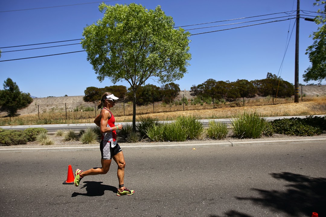 Highlights – The course itself! I am in love with its hills and vineyards and gorgeous countryside! It’s a bit quiet out there as spectators are scarce and the roads are rather rough but, honestly, I had a blast! During the first loop, I mostly rode behind Whitney (legally, of course). I tried to go in front a few times but she didn’t seem to like that and passed me right back each time. Well then, I figured, go right ahead. I am just fine back here. I don’t have a lot of experience with riding 112 miles and running a marathon afterwards, so I figured I would just follow her lead. Until special needs where she stopped and I didn’t. I rode in the lead for the second loop and was hoping to open up a bit of a gap knowing Whitney is a very strong runner. Overall the entire bike was a highlight and I was feeling fairly strong. Yay for salty balls and Osmo hydration as it was getting hot out there!