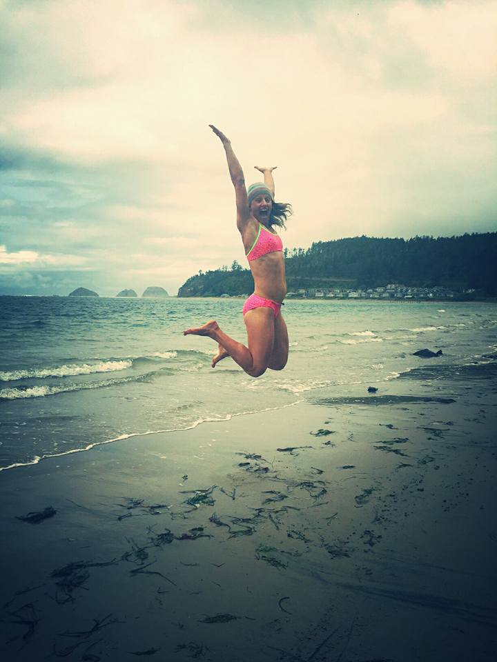 I pretty much knew from the beginning that I was going to go into the ocean one way or another. Rain or shine, warm or cold. How could I not?!? So on my last day in Netarts, we busted out the bikinis and winter hats, crossed the street, walked down a flight of stairs, and played on the beach for a while just long enough to take some pictures.